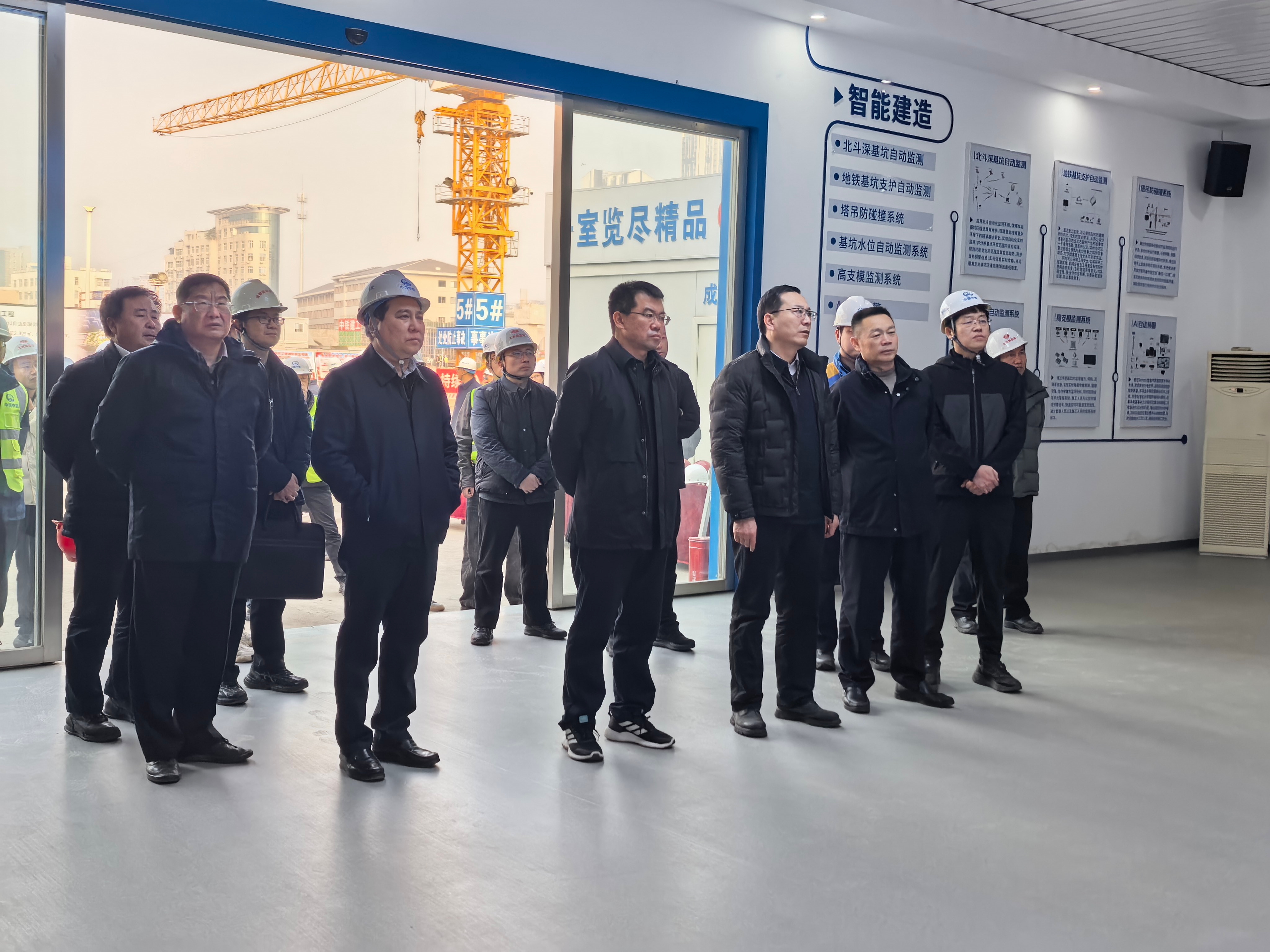 期间,检查组实地查看了高架广场施工现场,听取了项目负责人关于工程概况、施工进度、工期节点、安全质量等方面的情况汇报,并对制度办法、技术标准、专项方案、技术交底、安全教育等内业资料进行了详细检查。